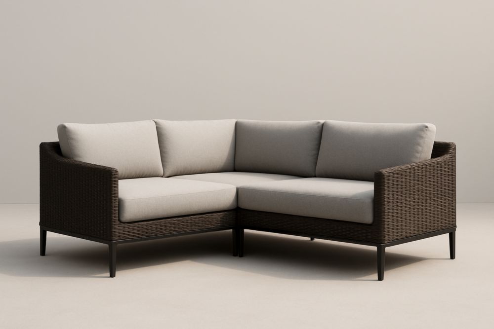 Divano angolare da esterno in rattan con cuscini in poliestere